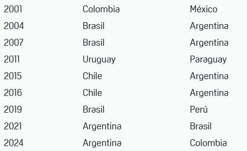 Históricamente la Finalissima solo se ha disputado tres veces (1985, 1993 y 2022) en París, Argentina y Londres respectivamente, aunque su nombre era Copa Artemio Franchi, dando como campeones a Francia y a Argentina en dos ocasiones.